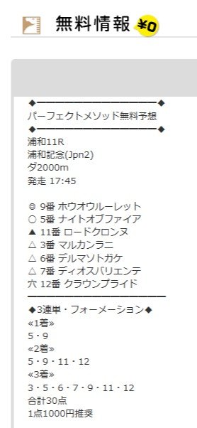 信頼と実績の大川慶次郎を11月1発目の地方無料予想でも見せてくれた!