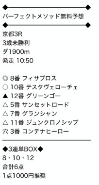 1月18日(日)は京都2Rで馬連・三連複・三連単的中