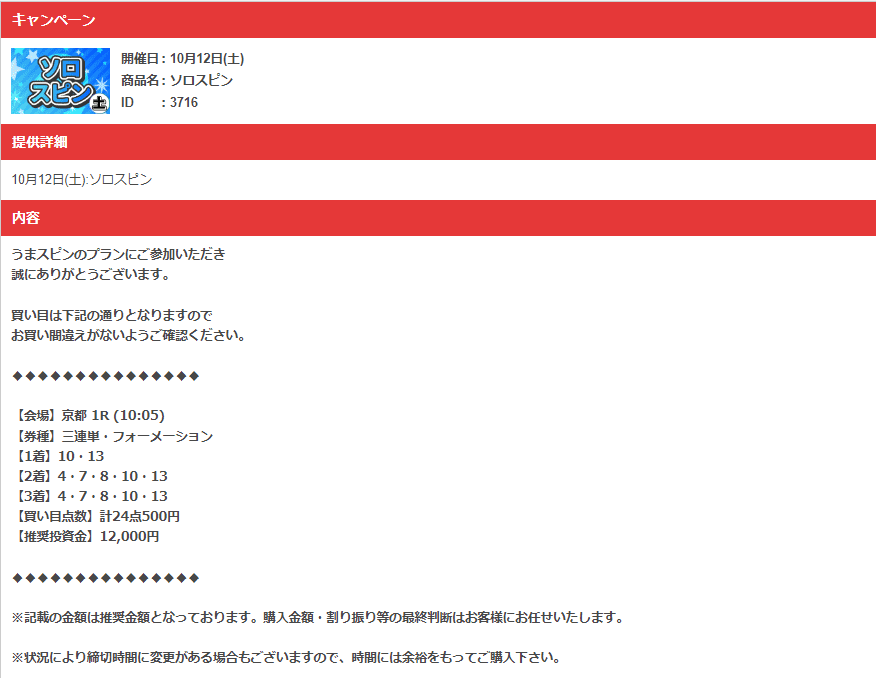 日曜日の無料情報の京都1Rの3連単当たってたねん^^