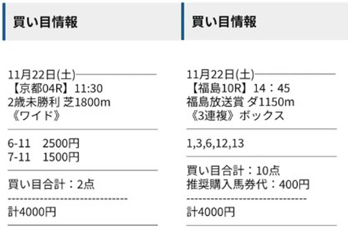 前日の福島2Rに続き、11/16福島7Rもバイアスナビを購入。ここが本当にヤバかった…。結果は13-14-15で3連単158,940円。フォーメーション9点×1点600円=5,400円の勝負で、払戻は953,640円とミリオン目前。2日連続でこのレベルの配当を引きずり出すのは、もはや“偶然”では片づけられません。トリガミ覚悟で広げるのではなく、「当てにいきながらも配当を最大化する配置」になっていて、本物のプロ集団だと感じました。