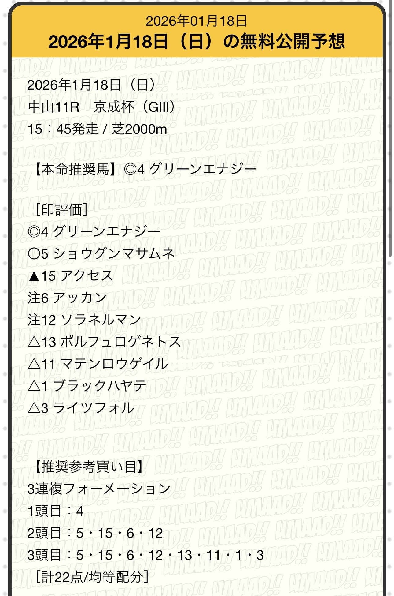 見事に無料予想で的中を届けてくれたのはうまあど