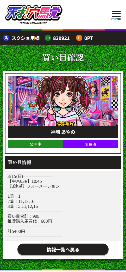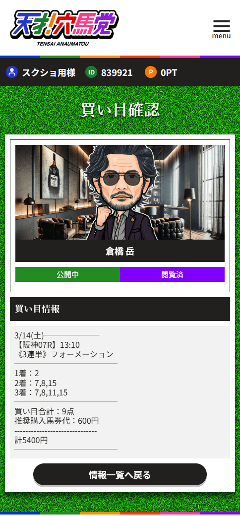 こういう“先生系”の情報って、正直当たる時と外れる時の差が大きい印象がありました。でも今回の牧原 弘は良い意味で裏切られました。中京4Rで1着17番が3番人気、2着2番が2番人気、3着5番が7番人気。軸はそこまで奇をてらわず、でも3着に7番人気を残して配当を作っているのがうまいです。9点で600円なら乗りやすいですし、それで30万6240円なら十分納得できる内容でした。変に煽る感じより、結果で見せてくれる方が信頼できます。