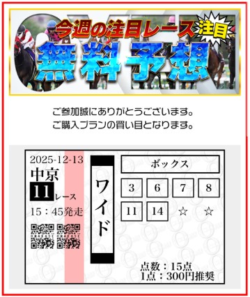 早速新規登録を済ませて13日(土)の無料予想に参加をしてみたら