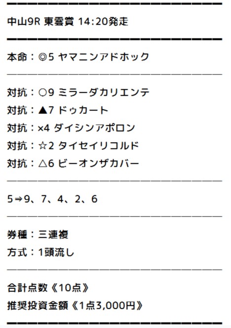 無料予想買い目点数1点で的中するのがやっぱりシンプルで一番馬券力を表しているなと思う。
